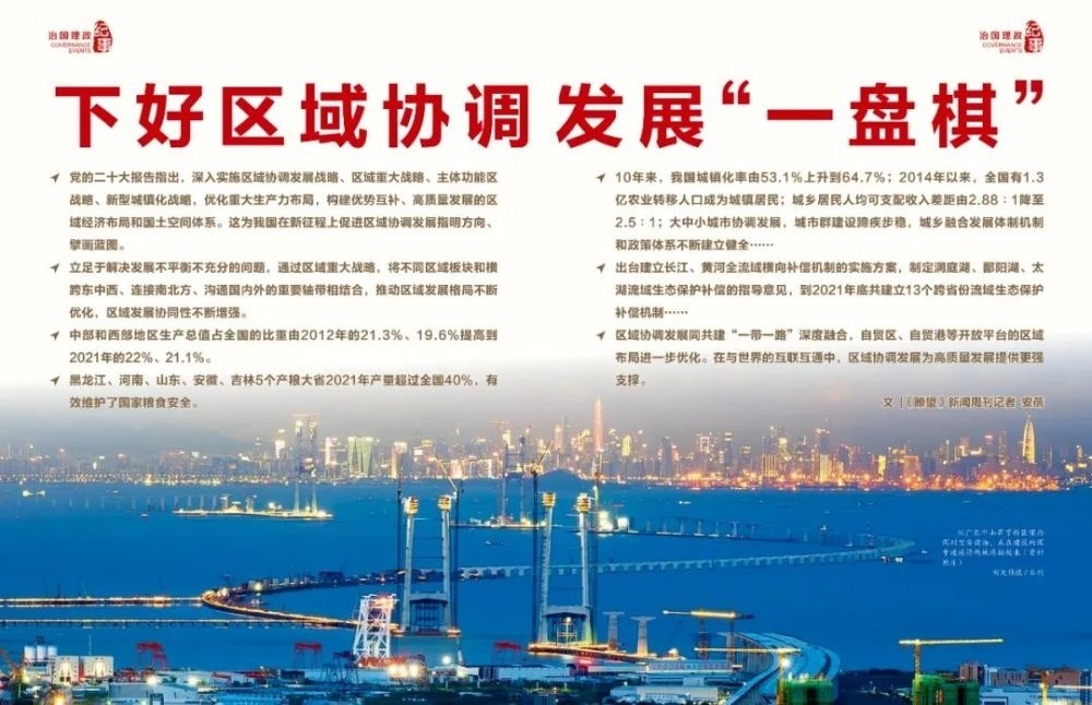 區(qū)域協(xié)調(diào)發(fā)展,是一盤著眼全局、縱橫聯(lián)動東西南北、統(tǒng)籌聯(lián)通國內(nèi)國外的發(fā)展大棋局。
