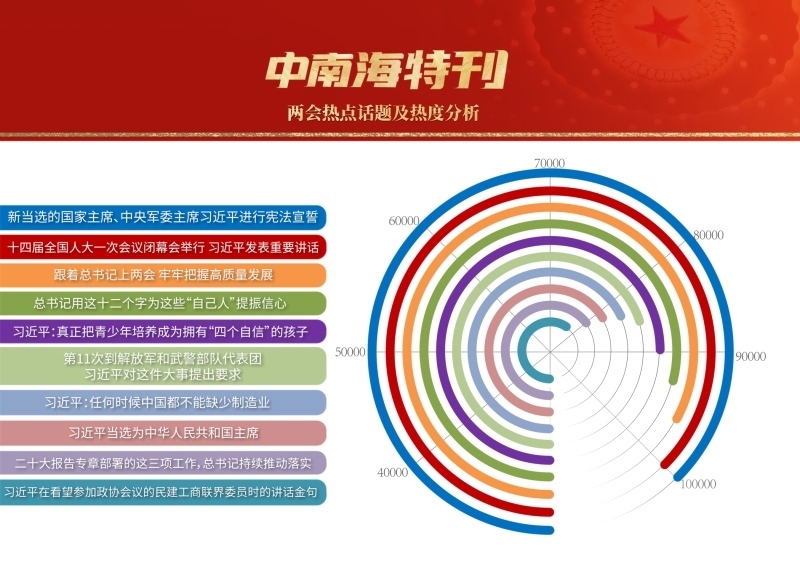 3月,世界目光,聚焦北京。近3000名中外記者采訪報道全國兩會。央視網(wǎng)“智聞”系統(tǒng)提取分析兩會期間全網(wǎng)時政新聞熱點顯示,習近平總書記的兩會關切吸引全網(wǎng)目光,新征程領路人的人民情懷成為網(wǎng)友“兩會印象”最深刻的主題之一。