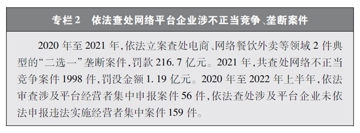 保障公平競爭的網(wǎng)絡(luò)市場環(huán)境。隨著網(wǎng)絡(luò)平臺企業(yè)不斷擴展自身的體量和實力,“掐尖式并購”、無正當(dāng)理由屏蔽鏈接、“二選一”、大數(shù)據(jù)殺熟、流量挾持等妨礙市場公平競爭的問題也逐漸凸顯。中國積極回應(yīng)人民群眾訴求,在支持網(wǎng)絡(luò)平臺企業(yè)創(chuàng)新發(fā)展的同時,依法規(guī)范和引導(dǎo)資本健康發(fā)展,采取多種治理平臺競爭失序的執(zhí)法舉措。聚焦大型網(wǎng)絡(luò)平臺價格欺詐、低價傾銷等重點問題,通過行政約談、行政指導(dǎo)、規(guī)則指引等多種監(jiān)管手段,整治壟斷和不正當(dāng)競爭行為。圍繞民生、金融、科技、傳媒等重點行業(yè),依法審查涉及平臺經(jīng)營者集中案件,防止可能妨礙市場競爭和創(chuàng)新發(fā)展的并購行為,引導(dǎo)網(wǎng)絡(luò)平臺企業(yè)增強合規(guī)意識,規(guī)范自身經(jīng)營行為。通過一系列行動,平臺經(jīng)濟市場環(huán)境不斷優(yōu)化,公平競爭的行業(yè)生態(tài)穩(wěn)步向好,中小企業(yè)獲得更廣闊的發(fā)展空間,統(tǒng)一、開放、公平、競爭、有序的網(wǎng)絡(luò)競爭環(huán)境正在形成。