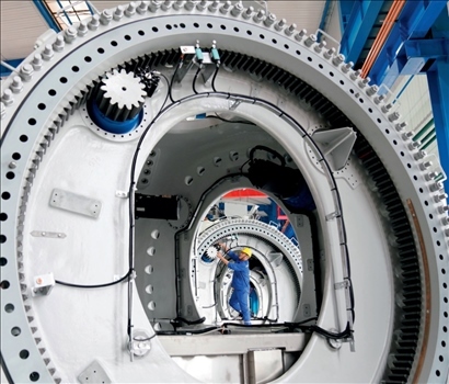 ▲ 在黑龍江省齊齊哈爾市中國一重集團有限公司風電裝備生產(chǎn)制造廠生產(chǎn)車間,工人進行生產(chǎn)作業(yè)(2021年7月1日攝) 王建威攝