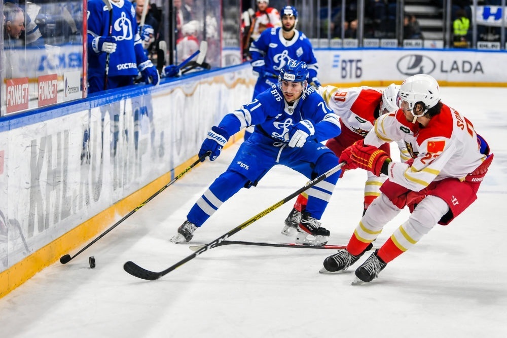 ↑2022年11月19日,中國(guó)北京昆侖鴻星隊(duì)(紅色)與俄羅斯莫斯科迪納摩隊(duì)在莫斯科舉行中俄體育交流年冰球友誼賽。兩國(guó)元首親自推動(dòng),延續(xù)互辦國(guó)家主題年的友好傳統(tǒng),繼“青年友好交流年”“媒體交流年”“地方合作交流年”“科技創(chuàng)新年”后,將2022年和2023年確定為“體育交流年”。