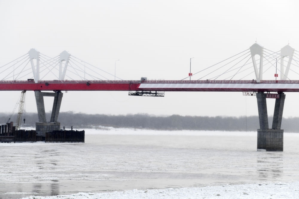 ↑這是中俄首座跨黑龍江公路大橋黑河-布拉戈維申斯克公路橋。這座大橋是兩國(guó)元首共同關(guān)心推動(dòng)的重大跨境基礎(chǔ)設(shè)施項(xiàng)目,它的開(kāi)通在中國(guó)東北地區(qū)和俄羅斯遠(yuǎn)東地區(qū)之間開(kāi)辟新的國(guó)際運(yùn)輸通道,成為中俄跨境互聯(lián)互通建設(shè)的標(biāo)志。