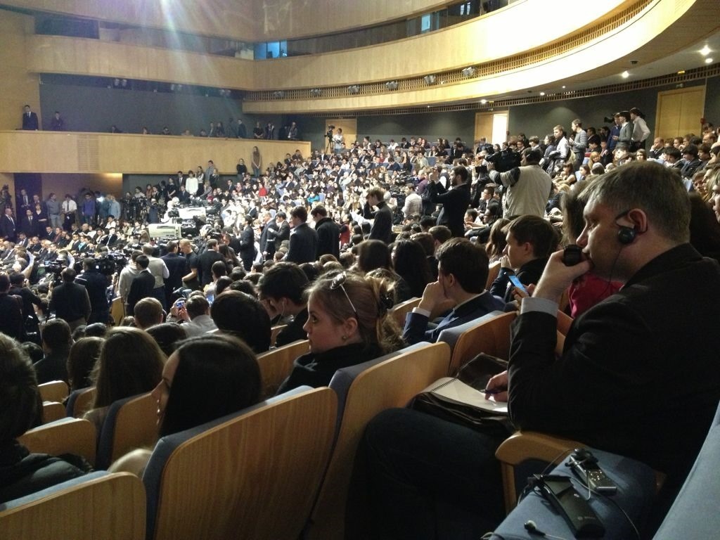 2013年3月23日,國家主席習(xí)近平在莫斯科國際關(guān)系學(xué)院發(fā)表演講時(shí),現(xiàn)場座無虛席。新華社發(fā)