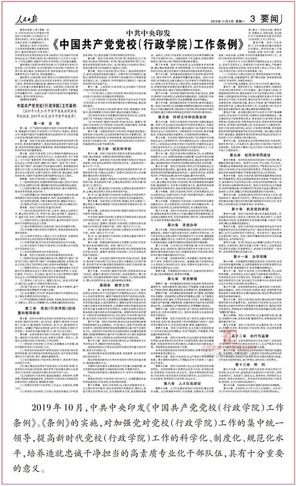 ——“黨委辦黨校、黨委管黨校、黨委建黨?!薄A?xí)近平總書(shū)記強(qiáng)調(diào),“各級(jí)黨委是辦黨校管黨校建黨校的主體,黨委書(shū)記是辦黨校管黨校建黨校的第一責(zé)任人”;“要把黨校工作納入黨委工作部署和黨的建設(shè)工作年度目標(biāo)考核,每年至少專題研究一次黨校工作”;“各級(jí)黨委主要負(fù)責(zé)同志要經(jīng)常過(guò)問(wèn)黨校工作,要到黨校調(diào)研指導(dǎo)或與學(xué)員座談,加強(qiáng)和改進(jìn)各方面工作”。