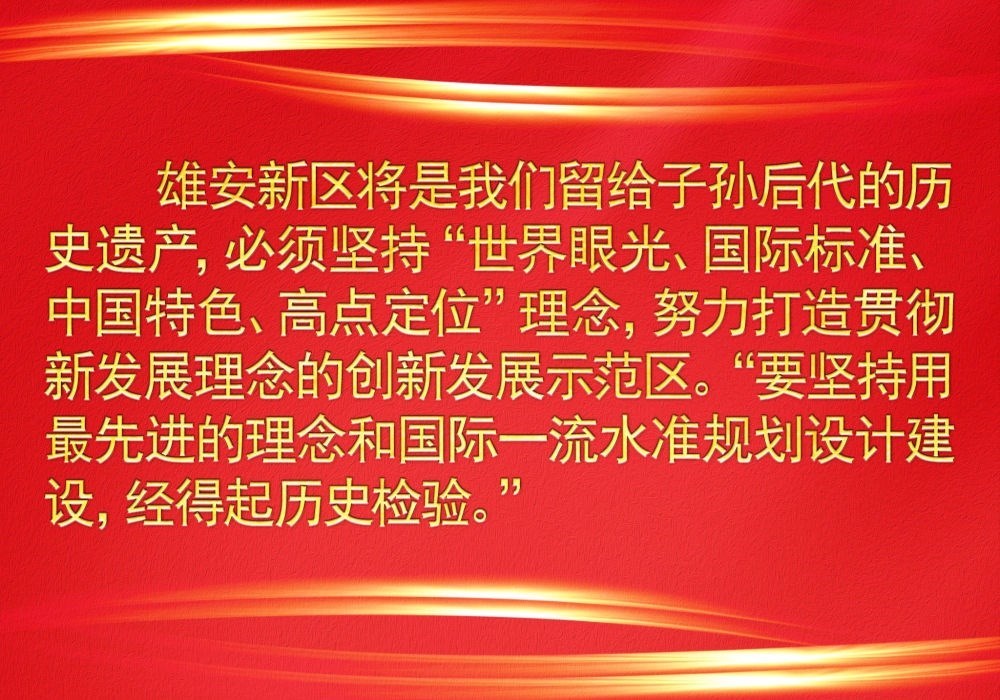 在以習(xí)近平同志為核心的黨中央領(lǐng)導(dǎo)下,堅(jiān)持大歷史觀,保持歷史耐心,一茬接著一茬干,一年接著一年干,確保一張藍(lán)圖干到底,努力創(chuàng)造“雄安質(zhì)量”,雄安新區(qū)正著力打造高質(zhì)量發(fā)展的全國(guó)樣板。
