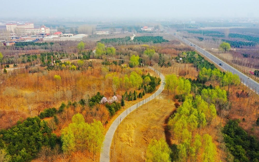 雄安新區(qū)千年秀林(3月20日攝,無(wú)人機(jī)照片)。截至2022年底,雄安新區(qū)累計(jì)造林46.9萬(wàn)畝,森林覆蓋率由11%提高到34%。