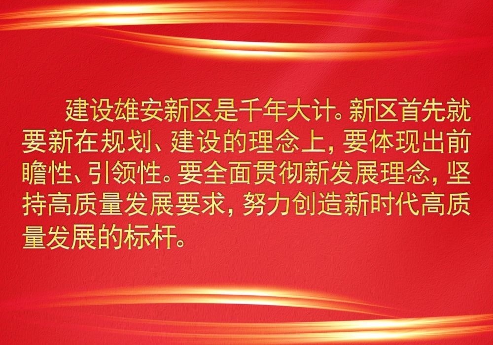 習(xí)近平總書記高瞻遠(yuǎn)矚謀劃推動(dòng)雄安新區(qū)規(guī)劃建設(shè),他強(qiáng)調(diào),要貫徹高質(zhì)量發(fā)展要求,創(chuàng)造“雄安質(zhì)量”,在推動(dòng)高質(zhì)量發(fā)展方面成為全國(guó)的一個(gè)樣板。