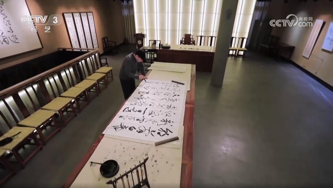 中國(guó)書(shū)法家協(xié)會(huì)草書(shū)專業(yè)委員會(huì)副主任、上海市書(shū)法家協(xié)會(huì)主席 丁申陽(yáng):武打的場(chǎng)面,他(導(dǎo)演)說(shuō)后面一堵墻,你可以用草書(shū)來(lái)書(shū)寫(xiě),掛在后面作背景。他說(shuō)這個(gè)草書(shū)跟武術(shù)其實(shí)有相同點(diǎn),都是動(dòng)態(tài)的美,也有左右避讓的關(guān)系,長(zhǎng)短的協(xié)調(diào)的關(guān)系,還有重輕的關(guān)系,矛盾平衡之間尋找一個(gè)點(diǎn),這個(gè)點(diǎn)就是協(xié)調(diào),協(xié)調(diào)就是美的。