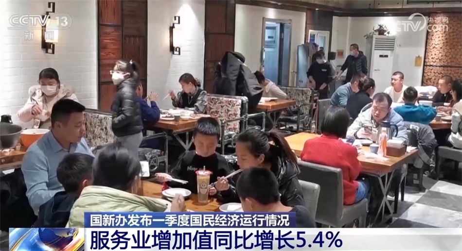服務業(yè)增速明顯回升。一季度,服務業(yè)增加值同比增長5.4%,高于上年四季度3.1個百分點。前期受疫情影響較大的接觸型、聚集型服務業(yè)回升尤為突出。