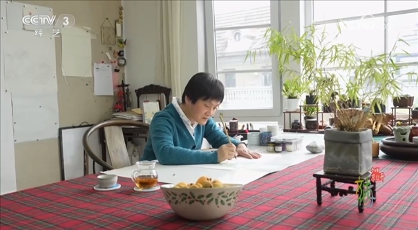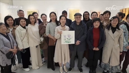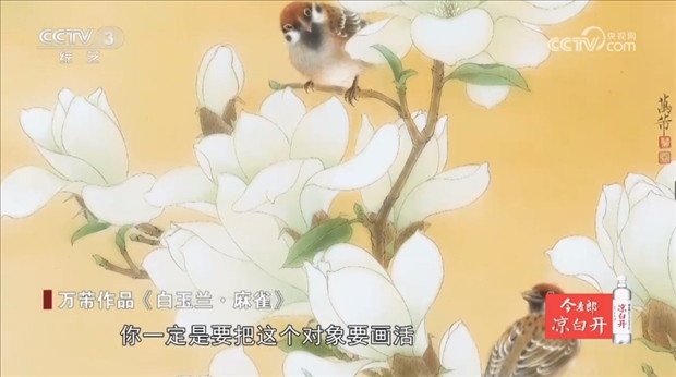 工筆花鳥畫家 上海市文史研究館館員 萬(wàn)芾:我這個(gè)老師一輩傳給我們,我們?cè)傧耠A梯一樣,一代一代承接傳承下去,就有傳承,而且這種傳承,不是這種脫離了中國(guó)傳統(tǒng)繪畫的,我們始終有一根主脈抓得很牢