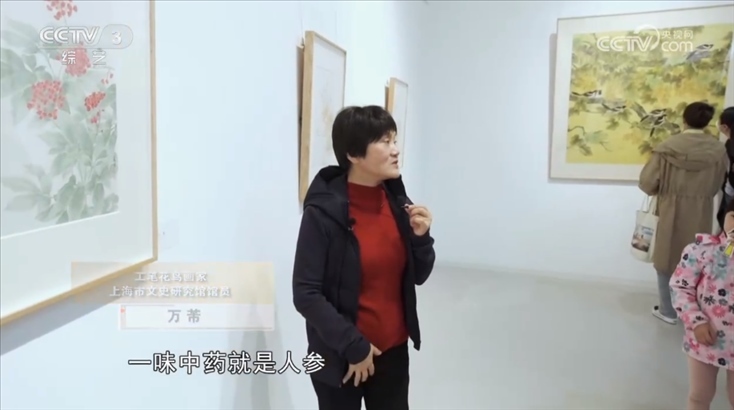 工筆花鳥畫家 上海市文史研究館館員 萬(wàn)芾:我們看看這幅,這幅應(yīng)該我們很熟悉的一味中藥材就是人參,看了中藥這么美麗的花,這么有生命力的現(xiàn)象,是不是我們吃的時(shí)候也不苦了。