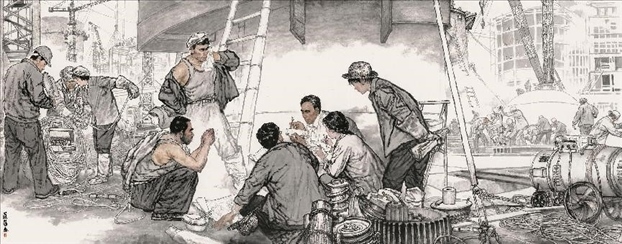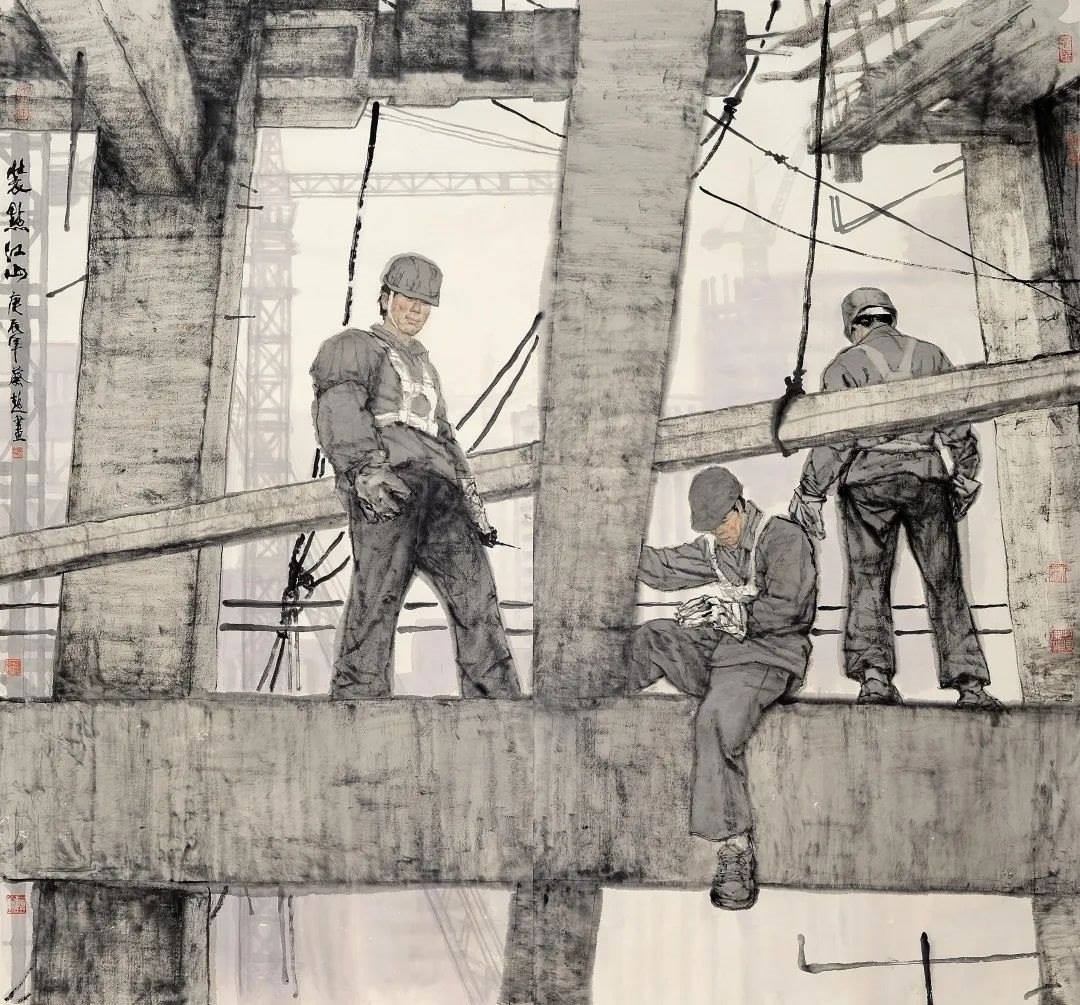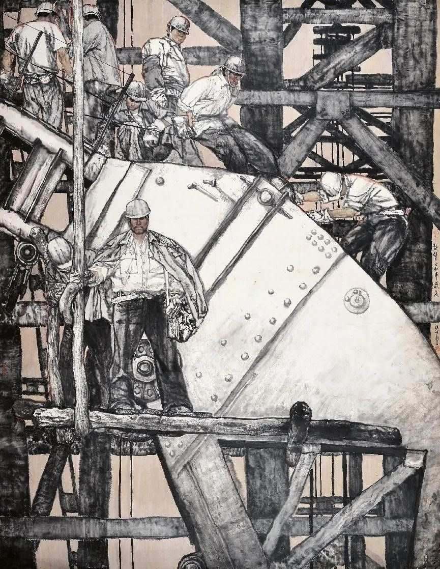 對(duì)傳統(tǒng)現(xiàn)實(shí)主義的繼承和拓展。作為一位具備卓越造型能力的人物畫家,蔡超始終堅(jiān)持深入現(xiàn)實(shí)生活,他以敏銳的觀察力和理解力,以豐富的人生閱歷不斷從生活中提煉創(chuàng)作母題,發(fā)掘常人所不易察覺的藝術(shù)趣味。因此,蔡超筆下的人物總是葆有鮮活的生命和氣息,他們不是空洞的“人民”,而是牢固與地氣相接,與時(shí)代共呼吸的真正的“人民”,他創(chuàng)造了嶄新的屬于贛鄱大地的人民形象,這是蔡超對(duì)于江西現(xiàn)實(shí)主義繪畫創(chuàng)作最重要的貢獻(xiàn)。同時(shí),蔡超不僅繼承了徐悲鴻、蔣兆和以來中國(guó)人物畫創(chuàng)作的優(yōu)良傳統(tǒng),更以“筆墨當(dāng)隨時(shí)代”的勇氣和魄力,在工業(yè)題材領(lǐng)域樹立了令人耳目一新的繪畫范式——這是一個(gè)前無古人的偉大突破。