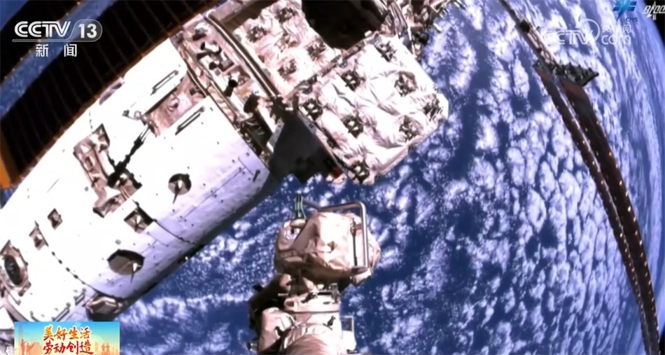 總臺(tái)央視記者 陶嘉樹:這個(gè)就是貨運(yùn)飛船的貨物艙,航天員所需的食物、水、實(shí)驗(yàn)設(shè)備等物資都是裝在這里“快遞”到空間站的。這個(gè)就是貨運(yùn)飛船與空間站的對(duì)接口,航天員就是通過(guò)這個(gè)對(duì)接口進(jìn)入貨運(yùn)飛船的。