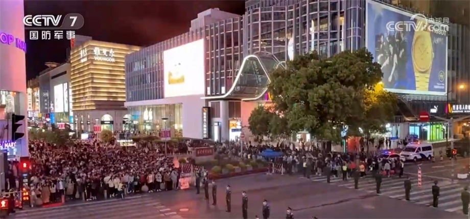假期的上海外灘人流如織,單日累計客流量達到27萬人左右,執(zhí)勤官兵組成拉鏈式人墻,引導(dǎo)市民游客有序通過。