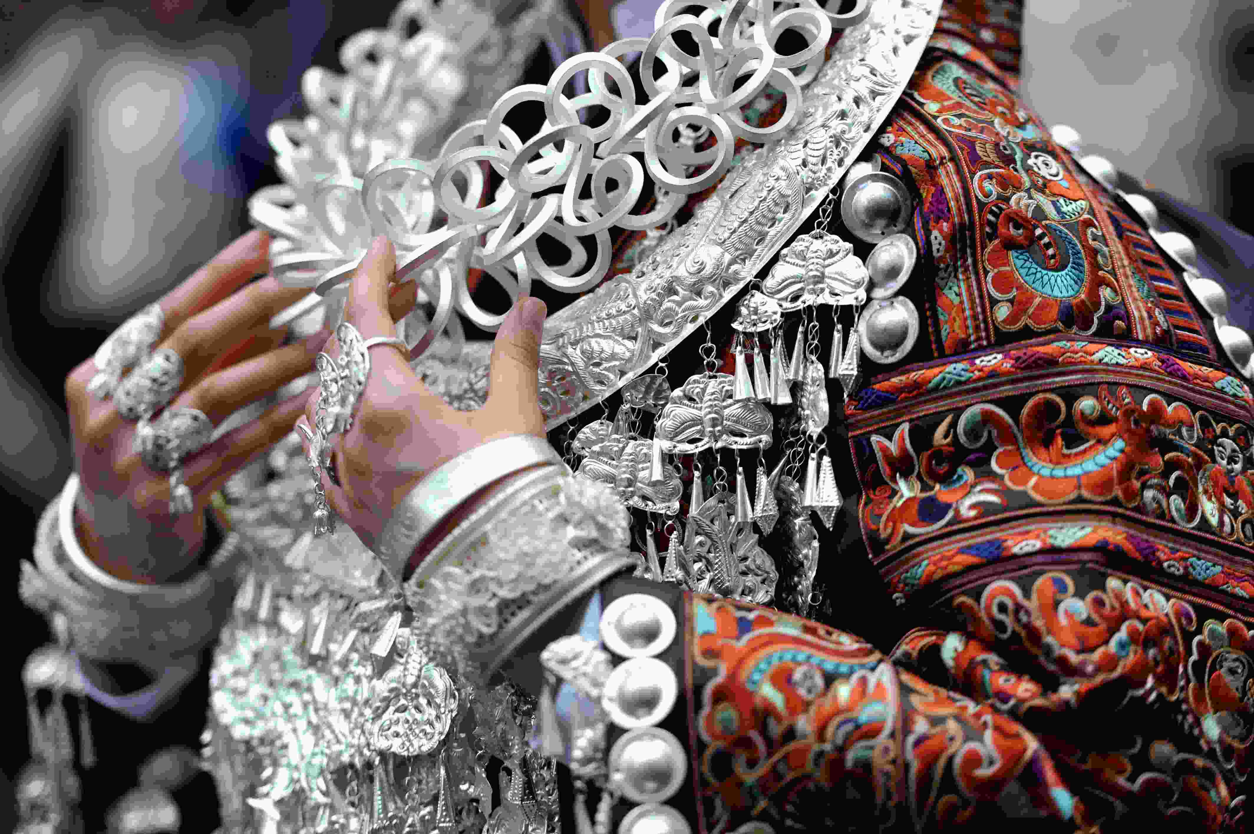貴州省臺(tái)江縣苗族文化豐富多彩厚重,其服飾是苗族文化的重要載體,苗族女子服飾以靚麗的銀飾、精美的刺繡和獨(dú)特的審美文化內(nèi)涵而被稱(chēng)為“穿在身上的史書(shū)”,成為識(shí)別苗族9大支系的重要標(biāo)識(shí),具有極高的藝術(shù)、觀賞和收藏價(jià)值。 (寧堅(jiān))