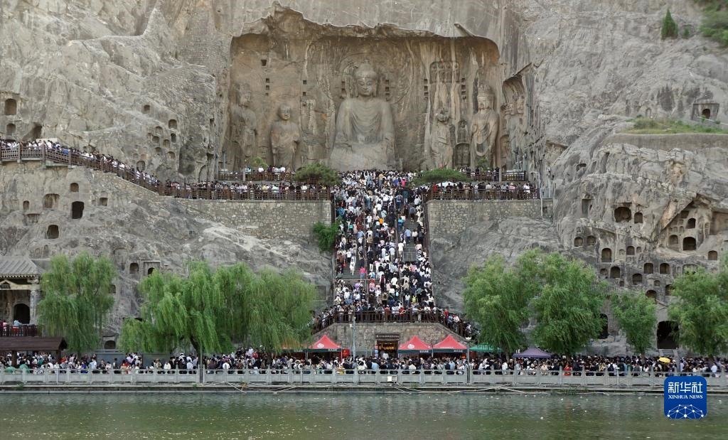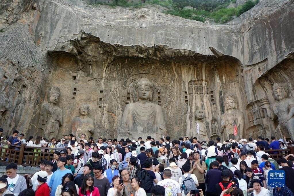 4月30日,游客在河南洛陽(yáng)龍門石窟景區(qū)游覽。