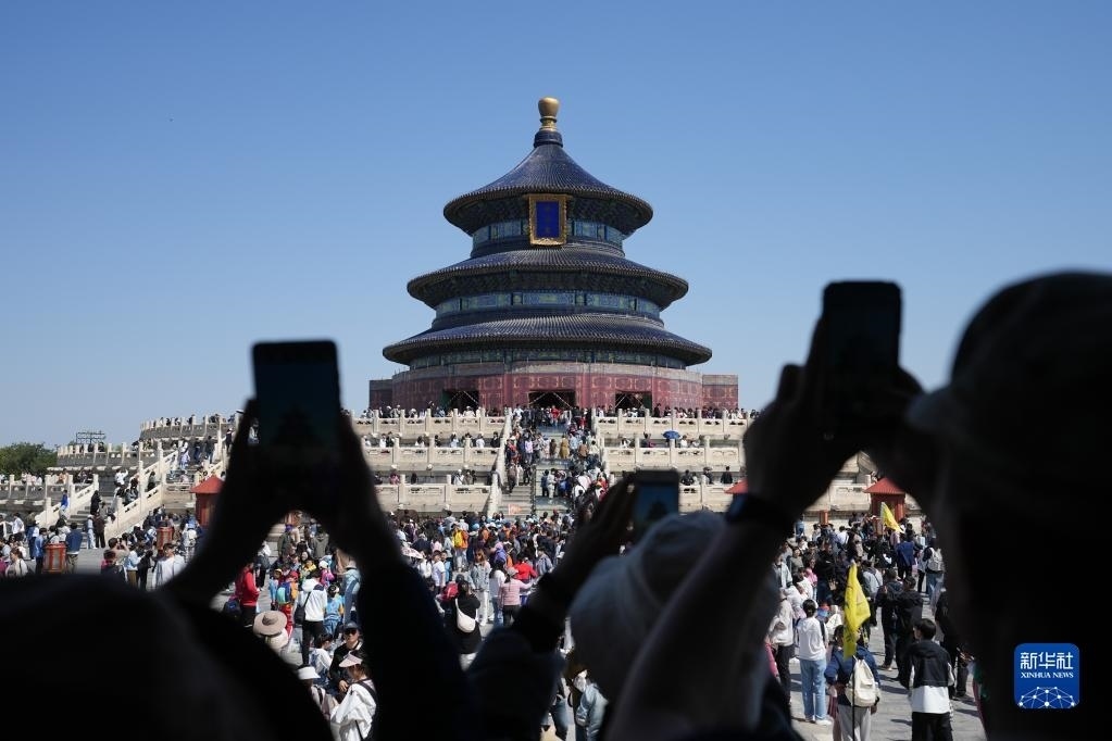4月29日,游客在北京天壇公園參觀游覽。