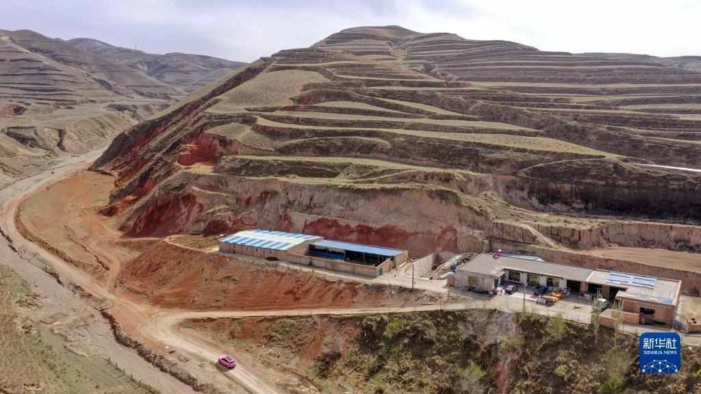 白婳開著粉色的汽車行駛在山路上,上門為養(yǎng)殖戶的??床。?月18日攝,無人機(jī)照片)。