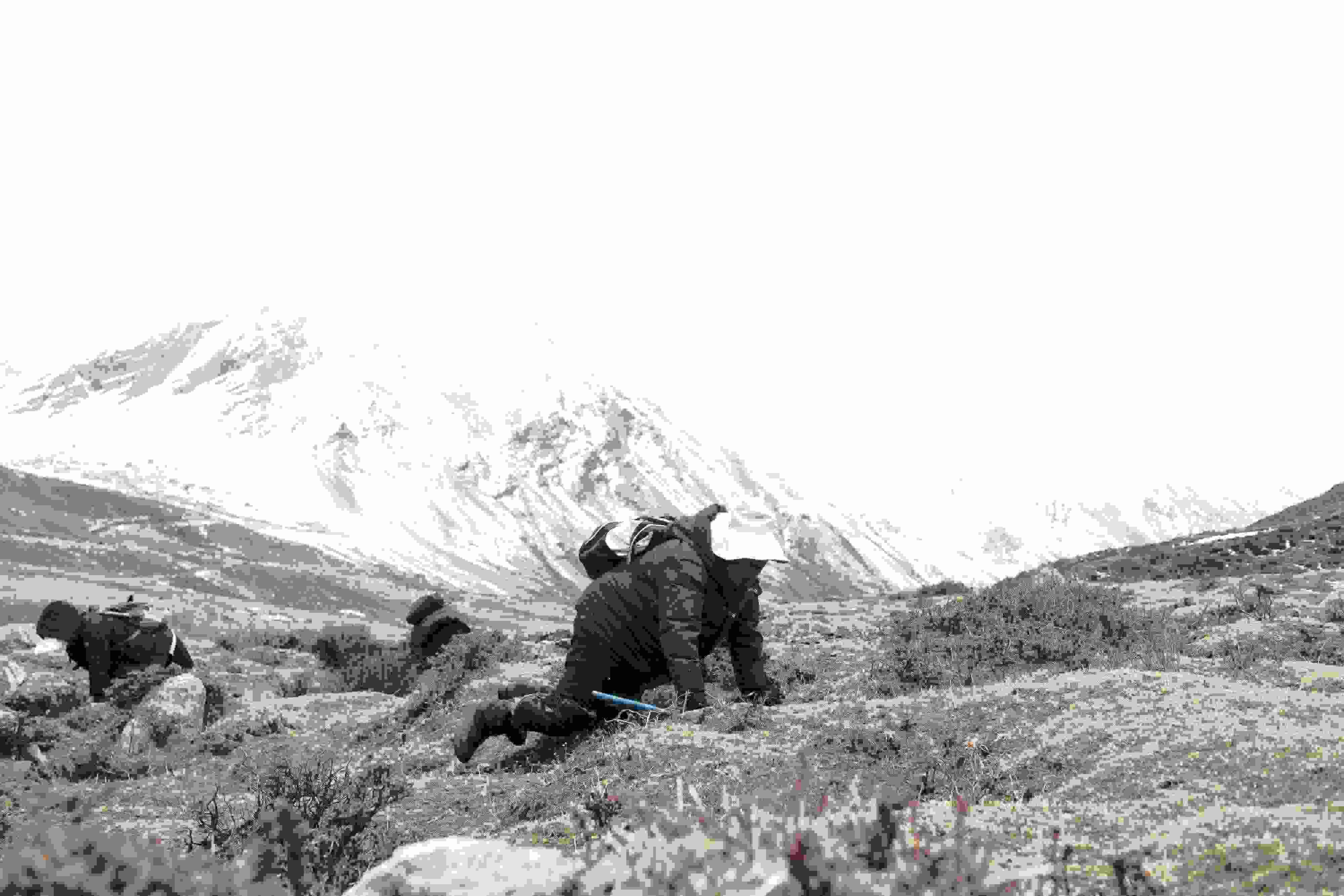 2023年5月7日,西藏山南,加查縣安繞鎮(zhèn)的村民在索囊溝采挖冬蟲(chóng)夏草。 視覺(jué)中國(guó)