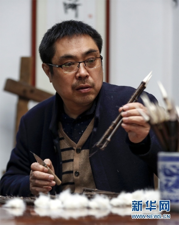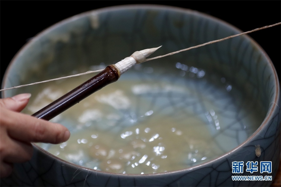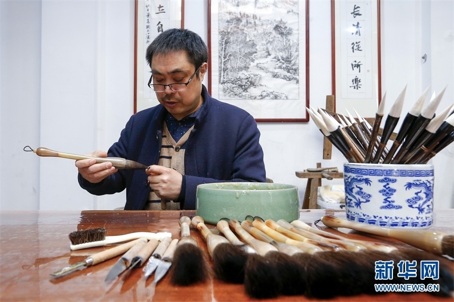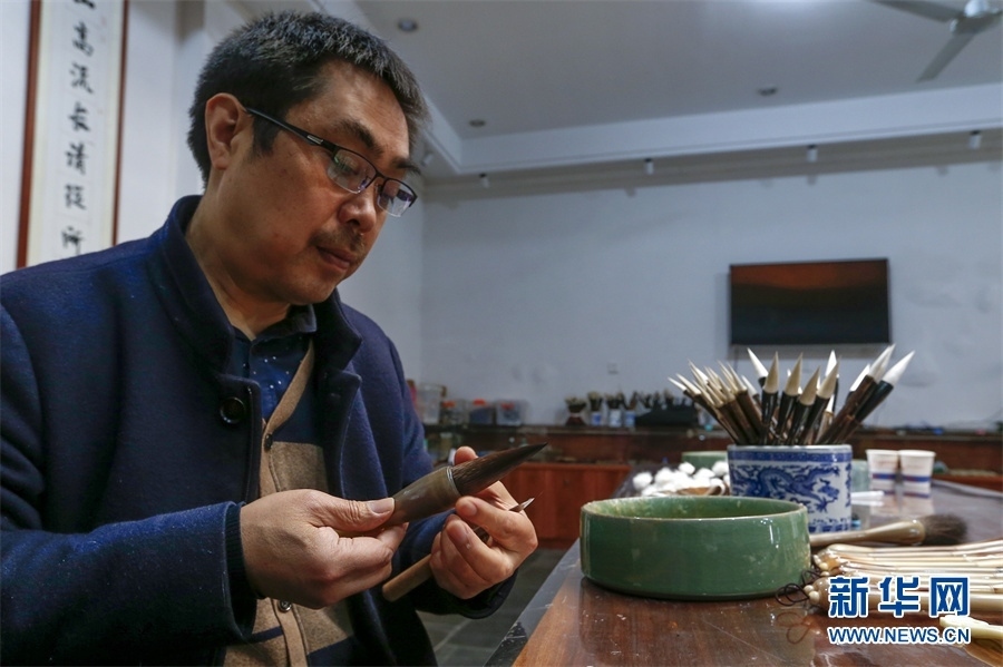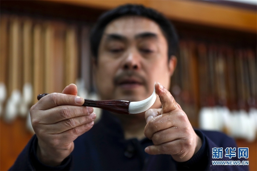 一支好的徽筆,不僅要保留傳統(tǒng)工藝,且要在原基礎(chǔ)上不斷創(chuàng)新、改良。楊文尤其重視書畫家對(duì)筆的使用反饋:“因?yàn)樗麄儗?duì)用筆最挑剔,而且現(xiàn)代書畫家創(chuàng)作方式和作品不斷創(chuàng)新,對(duì)毛筆也有新的要求,他們提出的要求我總是盡力去滿足,也使得制筆技藝進(jìn)一步得到了提高?!? 新華網(wǎng)發(fā)(施亞磊 攝)
