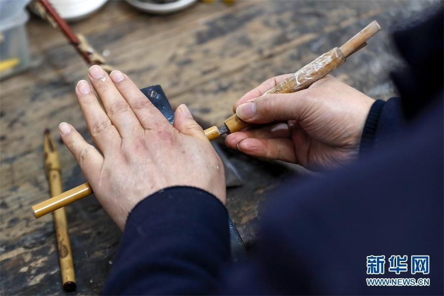 近日,國家級(jí)非遺傳承人楊文正在制作筆頭。