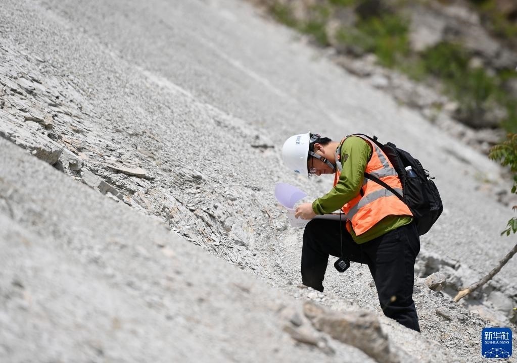 5月9日,在偏橋子滑坡地質(zhì)災(zāi)害隱患點(diǎn),參賽選手在對滑坡體進(jìn)行觀察記錄。