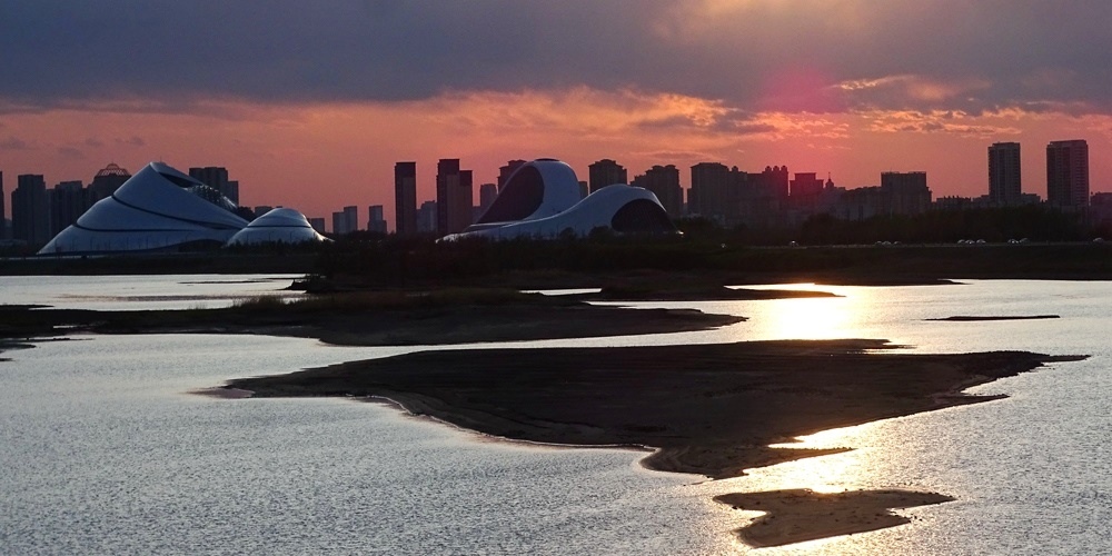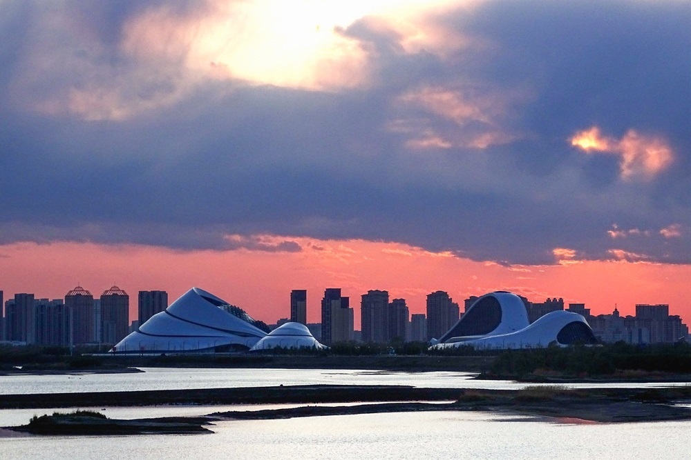 5月9日,落日時(shí)分的黑龍江省哈爾濱市太陽島濕地,晚霞將北國冰城裝扮得絢麗無比,美不勝收。 吳胡荼 攝