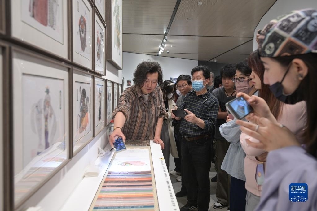5月9日,作者申杰在展覽現(xiàn)場向觀眾介紹自己的作品。