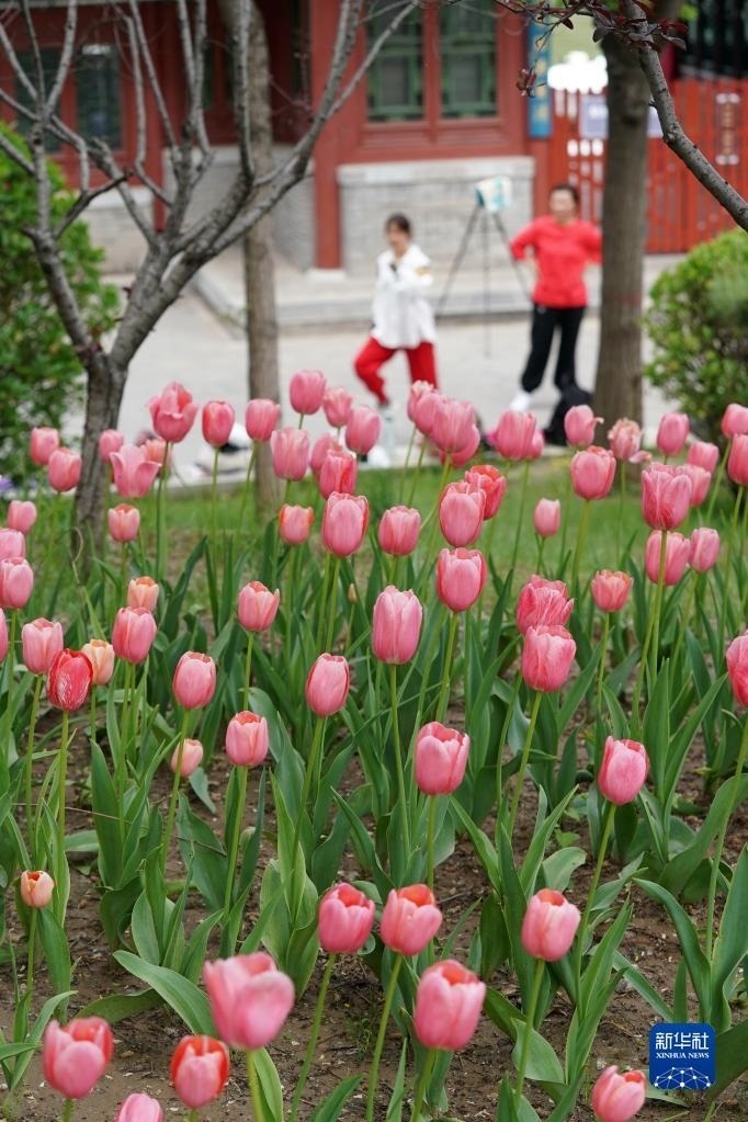 近日,山西省太原市迎澤公園內(nèi)各色郁金香競相綻放,吸引游人前來觀花賞景。新華社記者 詹彥 攝
