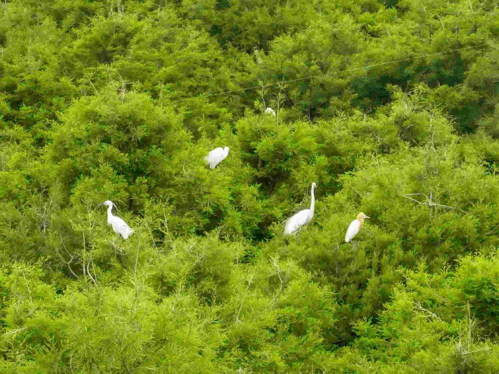 2023年5月11日,江蘇連云港,東海縣西雙湖濕地公園,上千只鷺鳥前來棲息繁衍。視覺中國