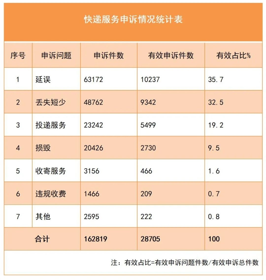 快遞服務(wù)申訴情況