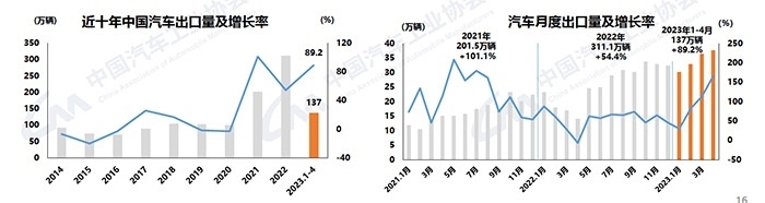 中新網(wǎng)5月11日電 (中新財經(jīng) 葛成)11日,中汽協(xié)發(fā)布汽車產(chǎn)銷數(shù)據(jù)。2023年4月,汽車產(chǎn)銷分別完成213.3萬輛和215.9萬輛,同比分別增長76.8%和82.7%;新能源汽車產(chǎn)銷分別完成64萬輛和63.6萬輛,同比均增長1.1倍;汽車企業(yè)出口37.6萬輛,同比增長1.7倍。