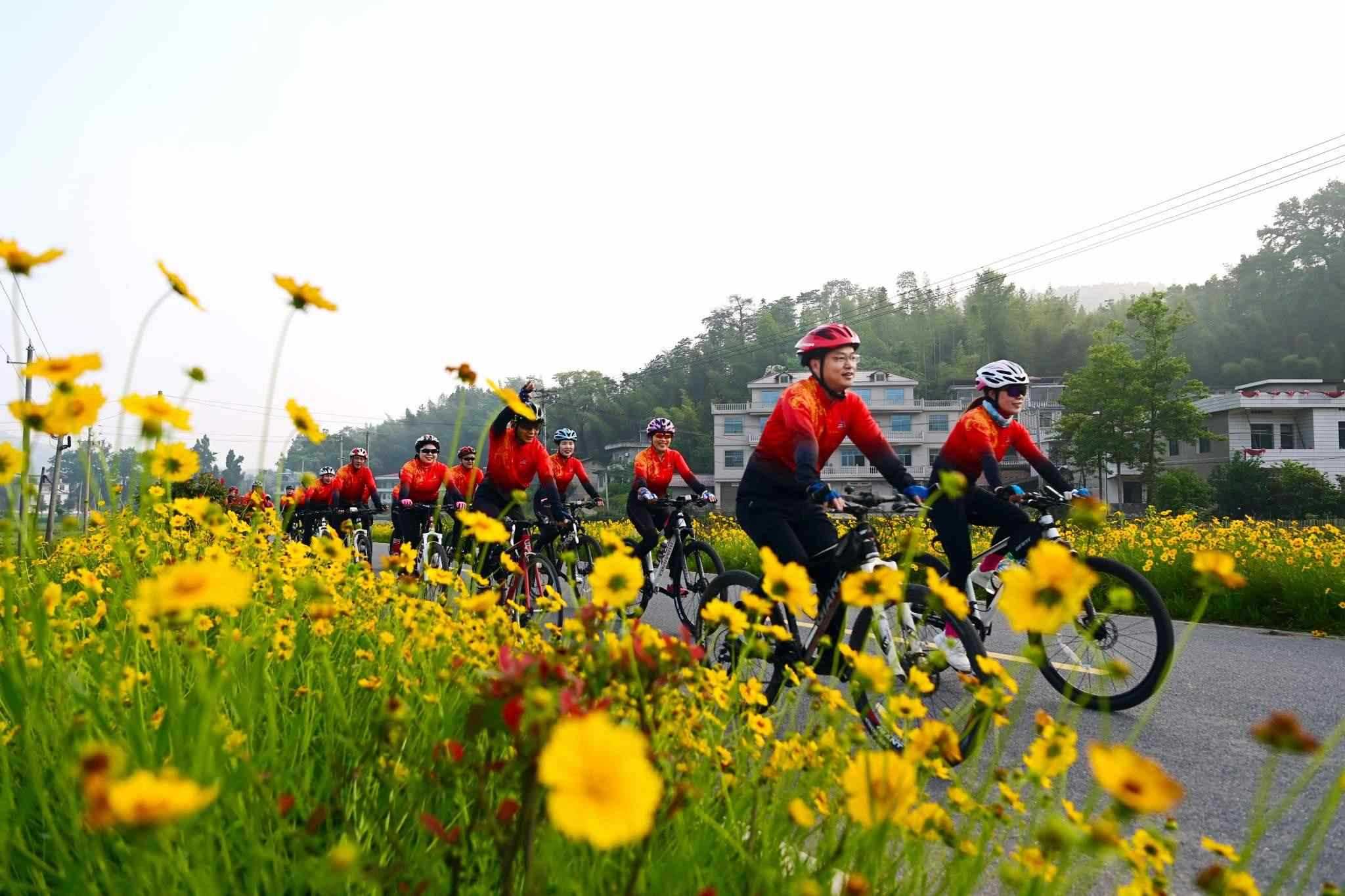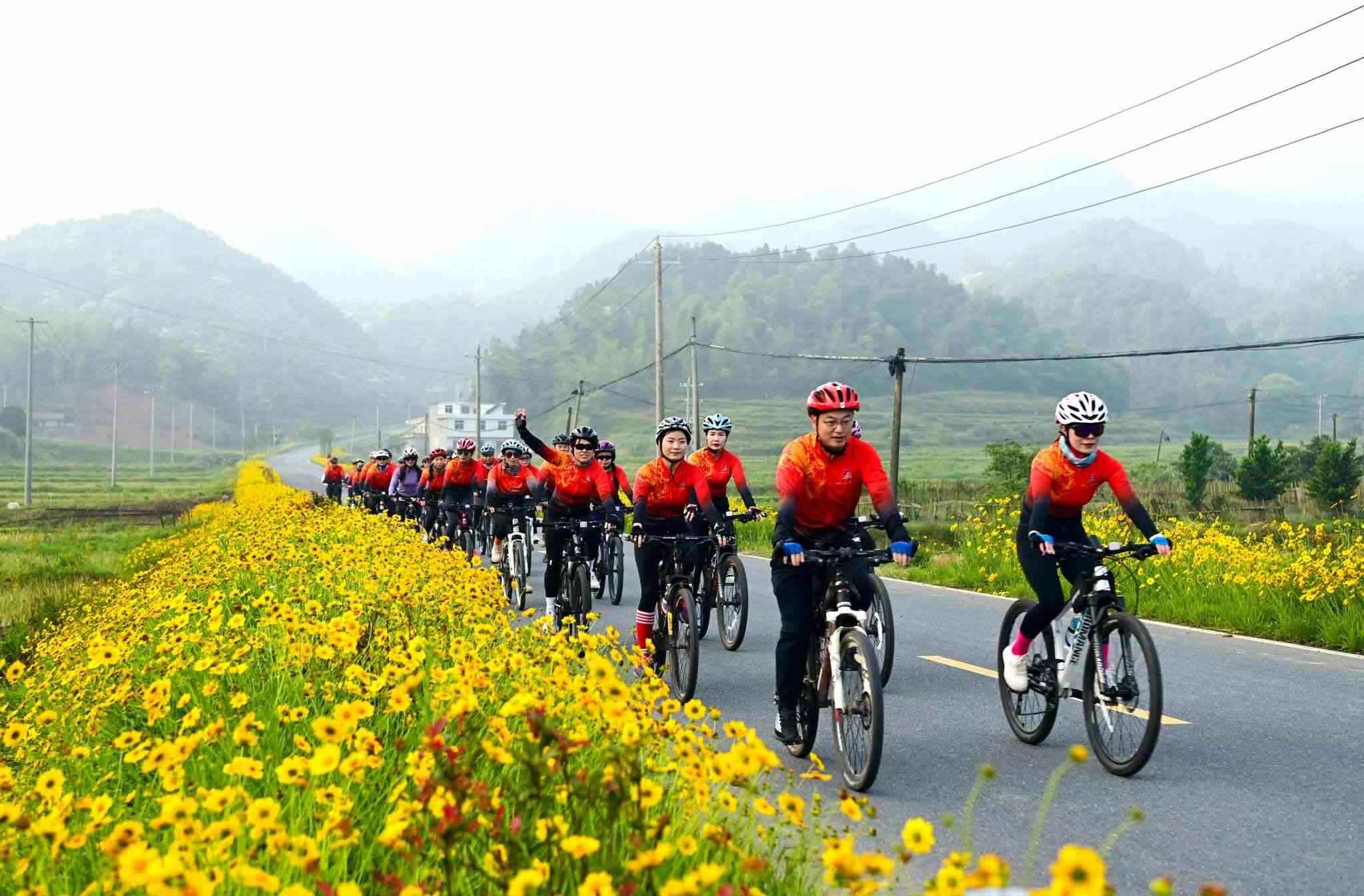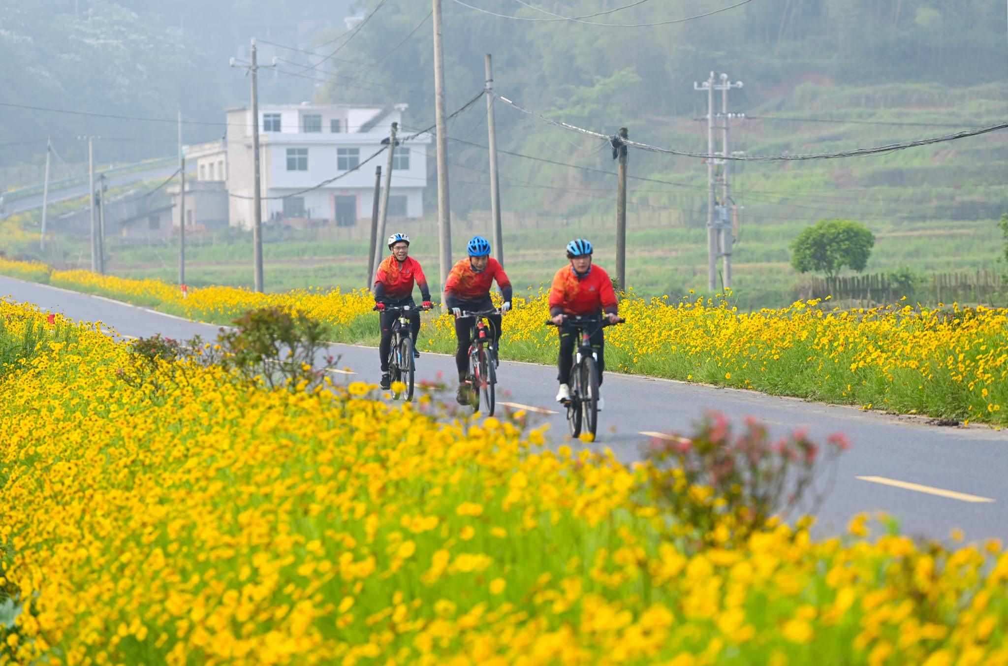 近日,江西省宜春市萬(wàn)載縣鵝峰鄉(xiāng)多江村通往白良鎮(zhèn)范塘村鄉(xiāng)村公路兩旁的格?;ǜ?jìng)相綻放、搖曳多姿,吸引眾多騎行、攝影愛(ài)好者前來(lái)游玩打卡。視覺(jué)中國(guó)