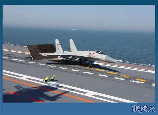 戰(zhàn)機在遼寧艦做起飛準(zhǔn)備