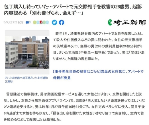 ·日本茨城縣牛久市一名26歲失業(yè)男子因不滿(mǎn)女友提分手,潛入女方家陽(yáng)臺(tái)蹲守近8小時(shí),等她出來(lái)收衣服時(shí)將其殺害。