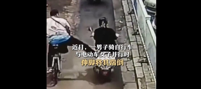 ·一男子騎自行車(chē)與一騎電動(dòng)車(chē)女子并行時(shí)伸腳將其踹倒。街道辦回應(yīng):事發(fā)后當(dāng)?shù)嘏沙鏊槿胝{(diào)查,當(dāng)事雙方已和解。
