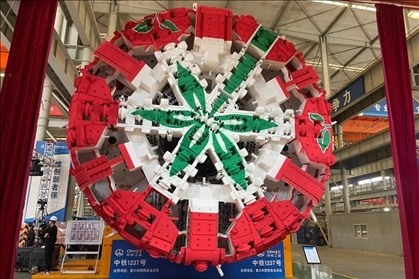 “中鐵1237號(hào)”在河南鄭州下線(xiàn),這個(gè)相當(dāng)于三層樓高的“大家伙”將被出口用于意大利西西里島高速鐵路隧道建設(shè),服務(wù)“一帶一路”建設(shè)。