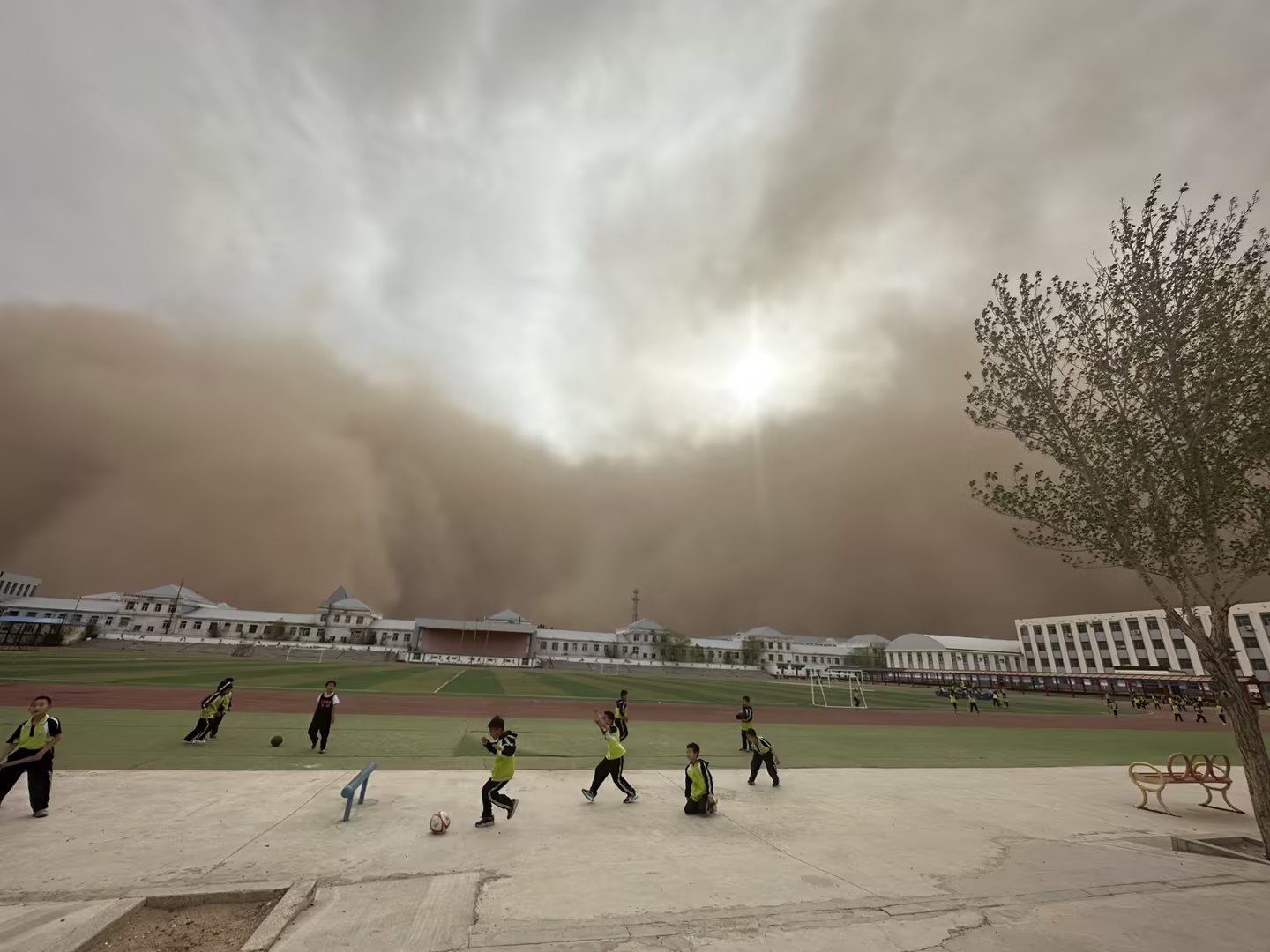 內蒙古二連浩特出現(xiàn)強沙塵暴 沙墻滾滾而來