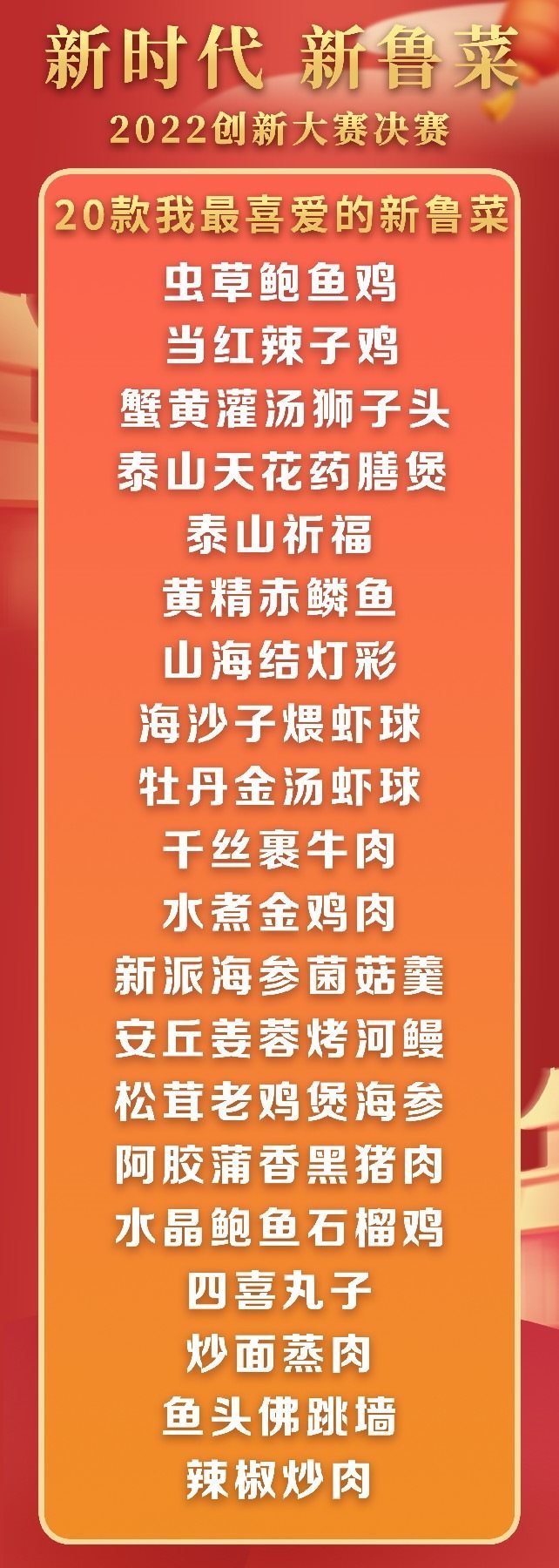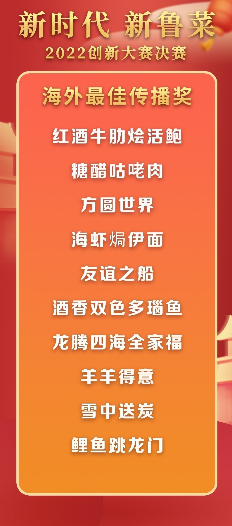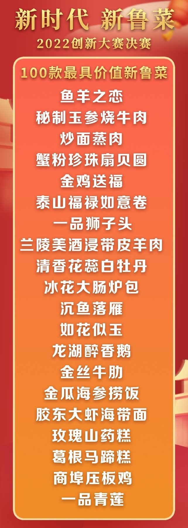 5月18日至19日,“新時(shí)代 新魯菜”2022創(chuàng)新大賽決賽暨頒獎(jiǎng)活動(dòng)在山東省濰坊市峽山區(qū)成功舉行,標(biāo)志著本屆大賽圓滿結(jié)束。經(jīng)過激烈角逐,大賽最終頒發(fā)出2022年度“十大魯菜創(chuàng)新菜品”、“20款我最喜愛的新魯菜”、“100款最具價(jià)值新魯菜”、“十大創(chuàng)新面點(diǎn)”、“預(yù)制菜轉(zhuǎn)化創(chuàng)新獎(jiǎng)”和“海外最佳傳播獎(jiǎng)”等獎(jiǎng)項(xiàng)。此外,大賽組委會(huì)還頒發(fā)了“最佳組織獎(jiǎng)”、“融媒貢獻(xiàn)獎(jiǎng)”和“特殊貢獻(xiàn)獎(jiǎng)”等獎(jiǎng)項(xiàng)。