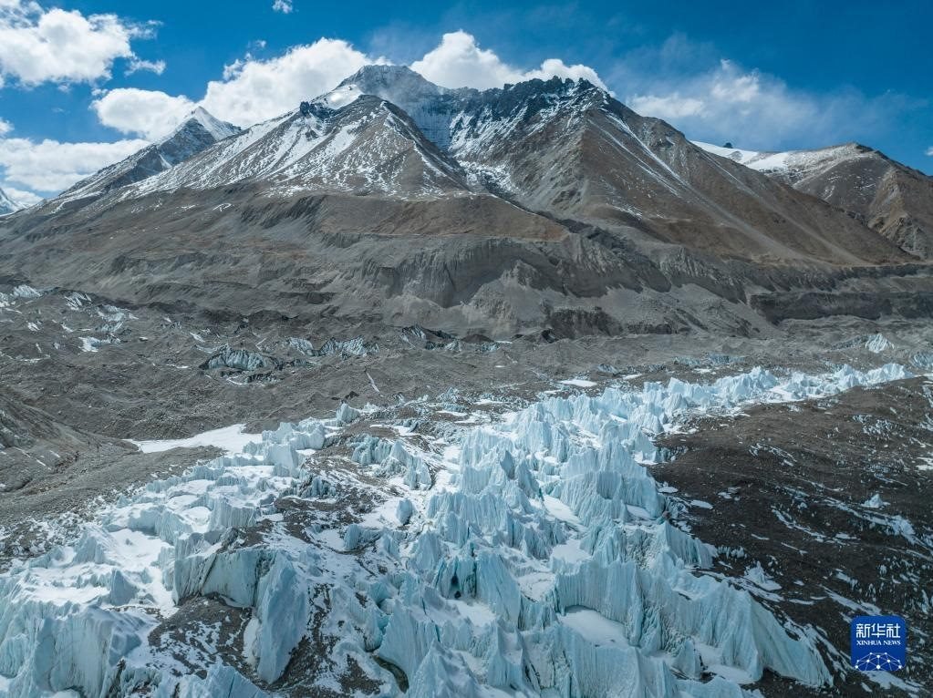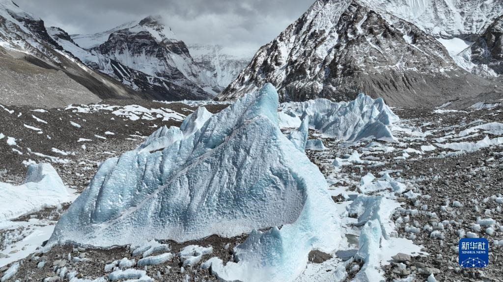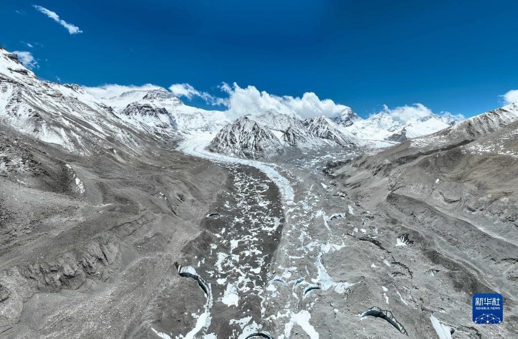 這是珠峰腳下的中絨布冰川(5月15日攝,無人機(jī)照片)。