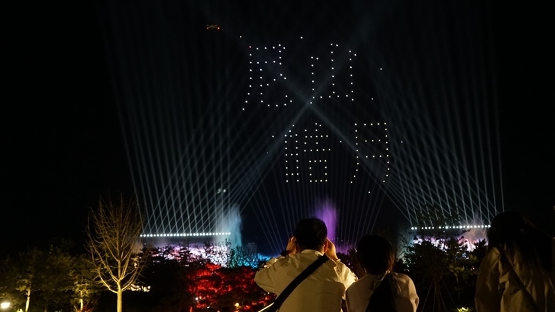 山東曲阜尼山圣境夜游項(xiàng)目內(nèi)的無人機(jī)表演。(受訪單位供圖)