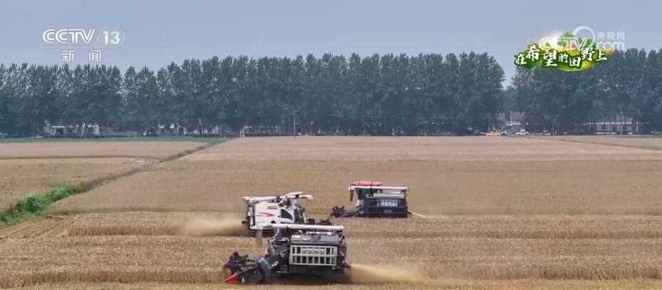 總臺記者 許偉:這里是湖北當陽市草埠湖鎮(zhèn)的一塊示范田。我們可以看到,金色的麥穗顆粒飽滿,現(xiàn)在有5臺收割機正在麥田里面來回穿梭,收獲小麥。據(jù)了解,今年當陽市安排了1800多臺(套)農(nóng)機具參與到夏收當中。