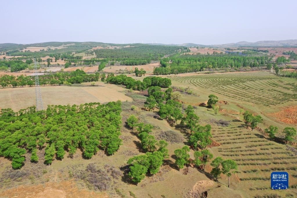 山西省右玉縣南山森林公園一角(5月18日攝,無人機照片)。