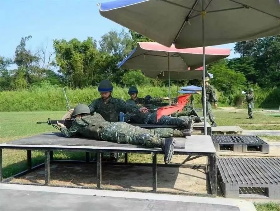 臺兵在太陽傘下訓練射擊被臺媒諷刺為“草莓兵”