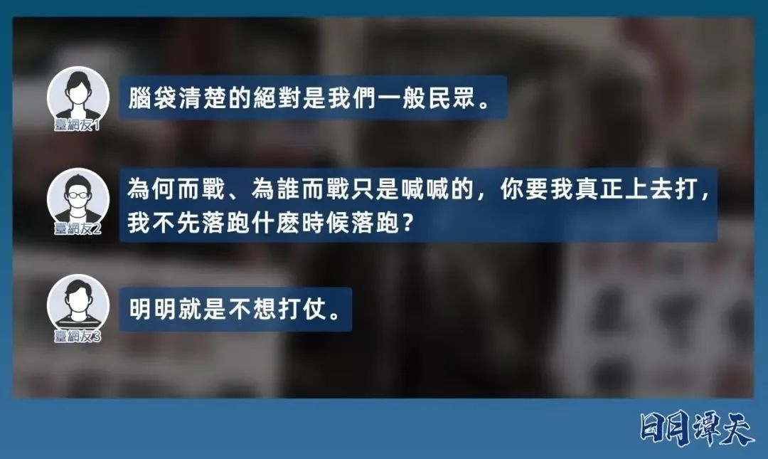 島內專家給譚主分析了臺灣青年不愿再賣命背后的深層邏輯。越來越多臺青意識到,“臺獨”意味著戰(zhàn)爭,為“臺獨”上戰(zhàn)場,打的是一場非正義的分裂國土之戰(zhàn),要背負歷史罵名,臺灣年輕人憑什么要為此賭上性命?與其被民進黨當局裹挾著為“臺獨”送死,不如盡早“跳車”,遠離臺軍。