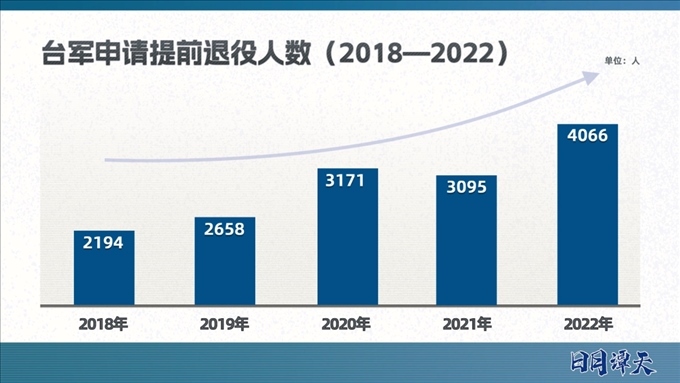 目前,臺軍實行以志愿役為主,義務役為輔的混合兵役制度。臺軍的主戰(zhàn)部隊由志愿役人員構成,通過招募而來、至少服役4年,這次上熱搜的“申請?zhí)崆巴艘鄣?000多人”主要就是志愿役士兵。