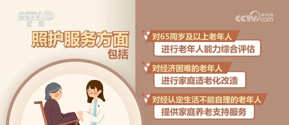 照護(hù)服務(wù)方面包括:對(duì)65周歲及以上老年人進(jìn)行老年人能力綜合評(píng)估;對(duì)經(jīng)濟(jì)困難的老年人進(jìn)行家庭適老化改造;對(duì)經(jīng)認(rèn)定生活不能自理的老年人提供家庭養(yǎng)老支持服務(wù);對(duì)特困老年人進(jìn)行集中供養(yǎng)或者分散供養(yǎng);對(duì)國家和社會(huì)作出特殊貢獻(xiàn)的老年人提供集中供養(yǎng)服務(wù);計(jì)劃生育特殊家庭老年人優(yōu)先享受機(jī)構(gòu)養(yǎng)老。