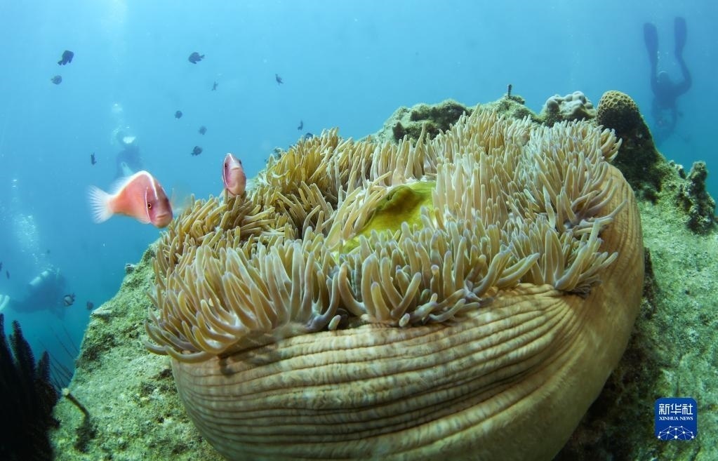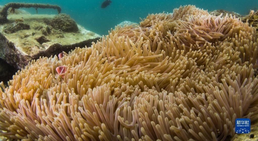 這是在蜈支洲島海域海洋牧場(chǎng)拍攝的小丑魚(yú)和海葵(2021年5月22日攝)。