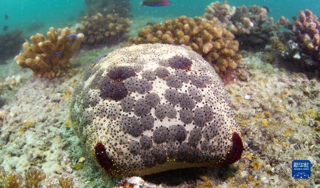 這是在蜈支洲島海域海洋牧場(chǎng)拍攝的面包海星(5月16日攝)。