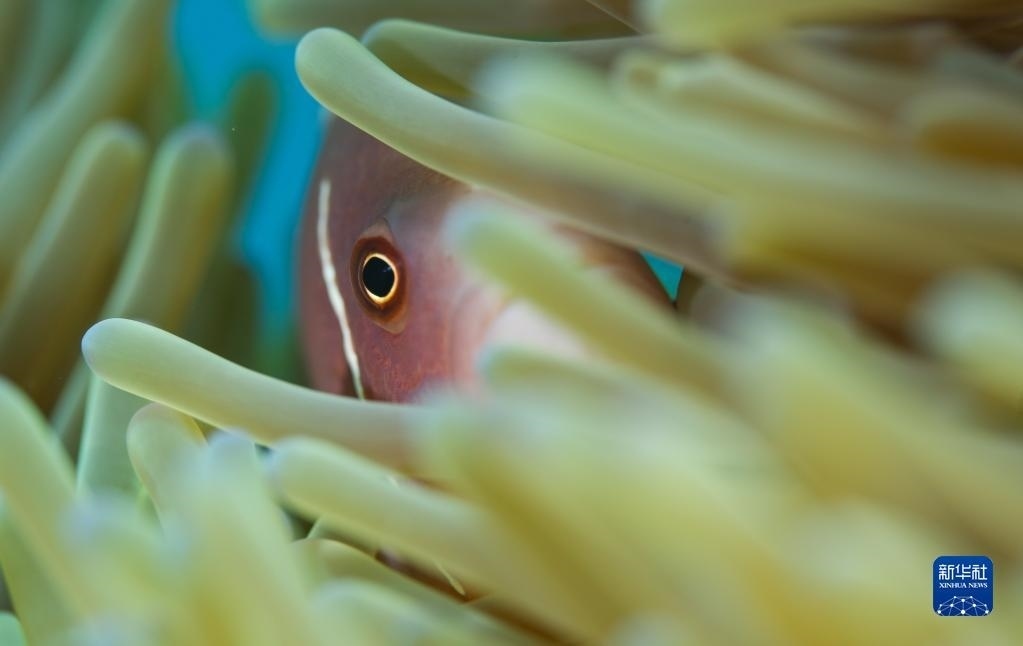 這是在蜈支洲島海域海洋牧場(chǎng)拍攝的小丑魚(yú)(5月17日攝)。 新華社記者 楊冠宇 攝
